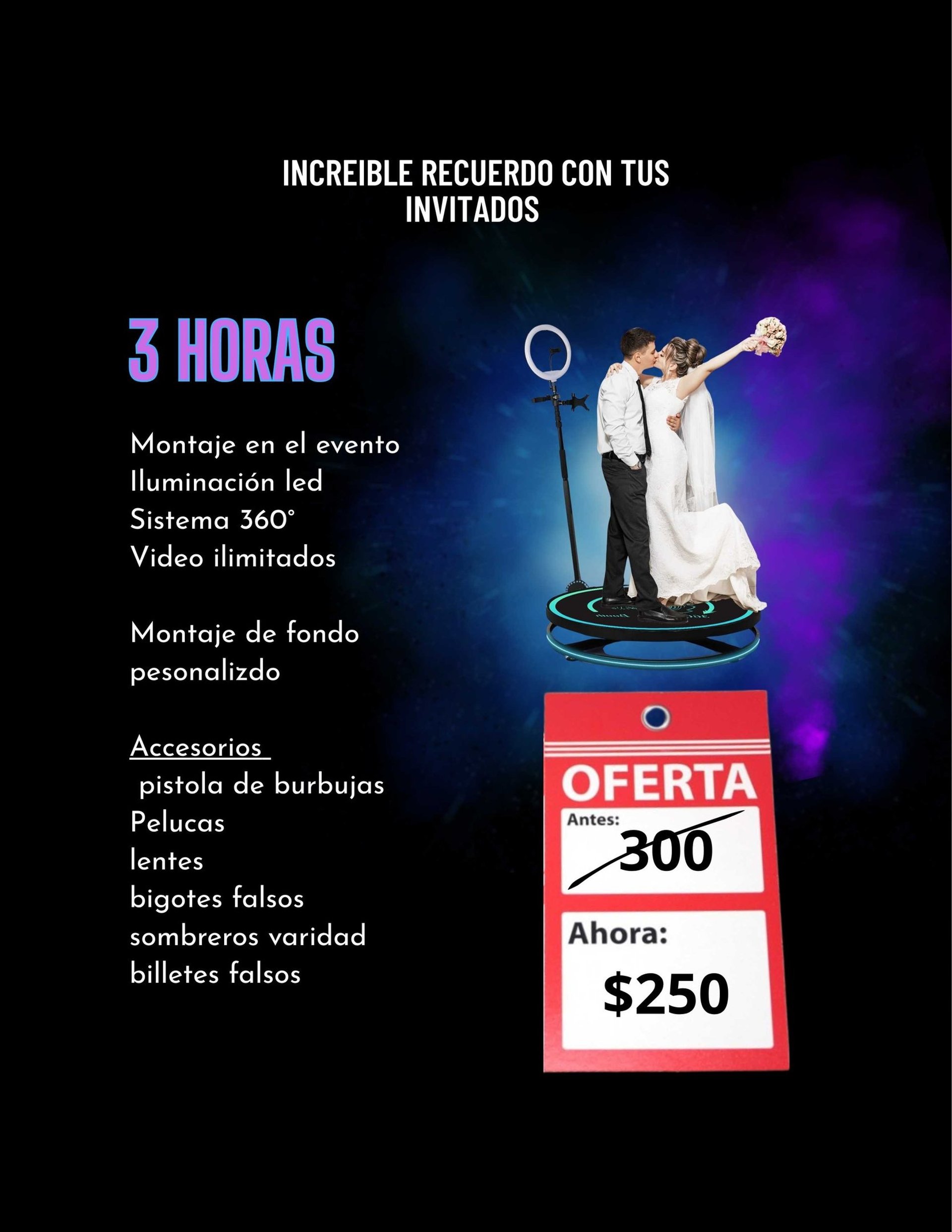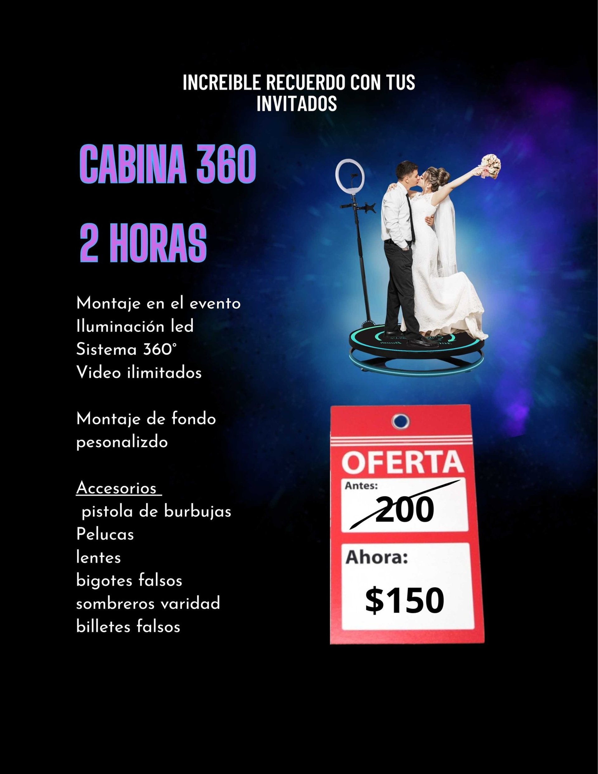 Capturamos cada emoción y momento especial, y ahora también te ofrecemos la cabina 360.